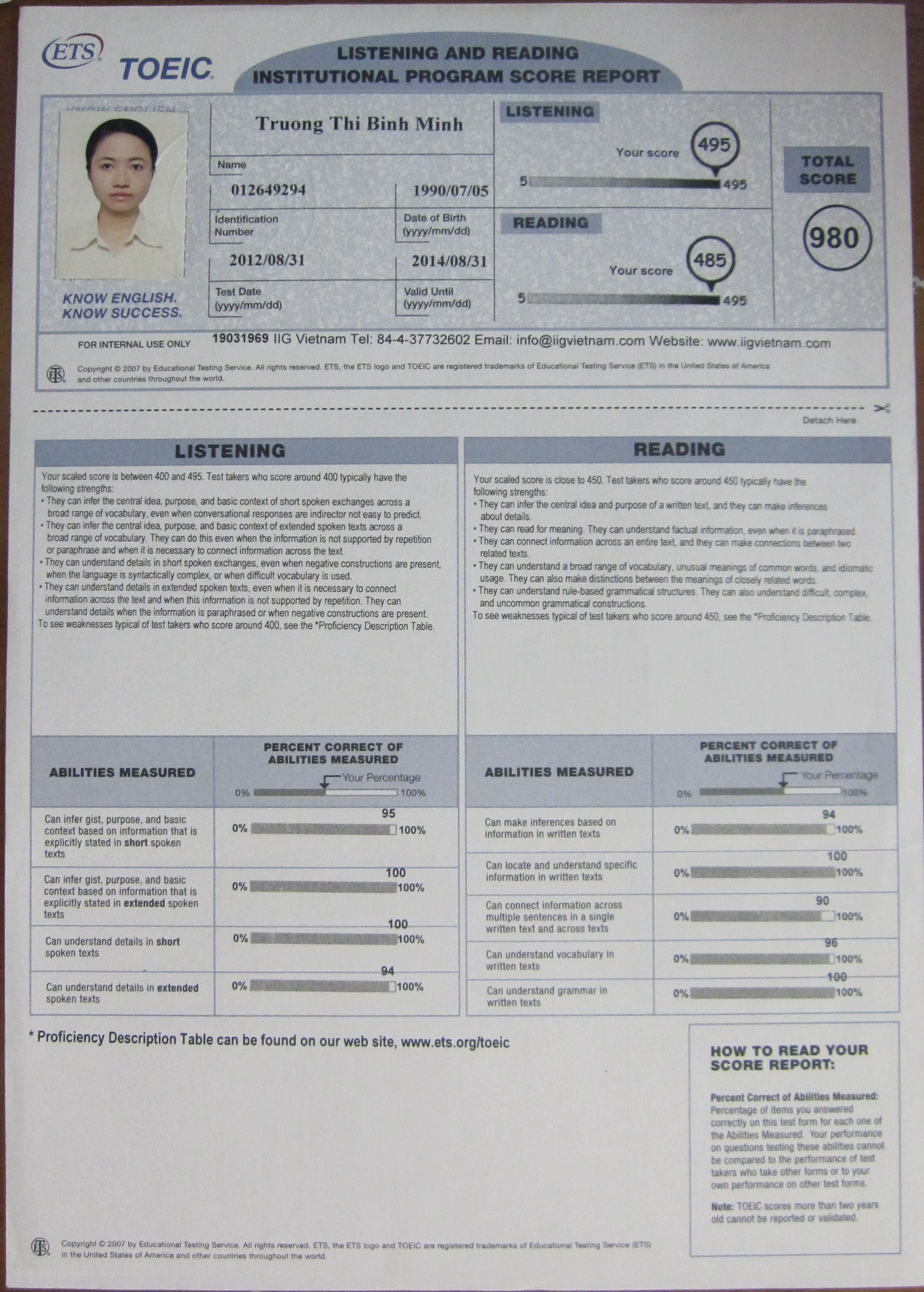 | Trương Thị Bình Minh | TOEIC 980, Toefl IBT 112 | Vào xem | ||