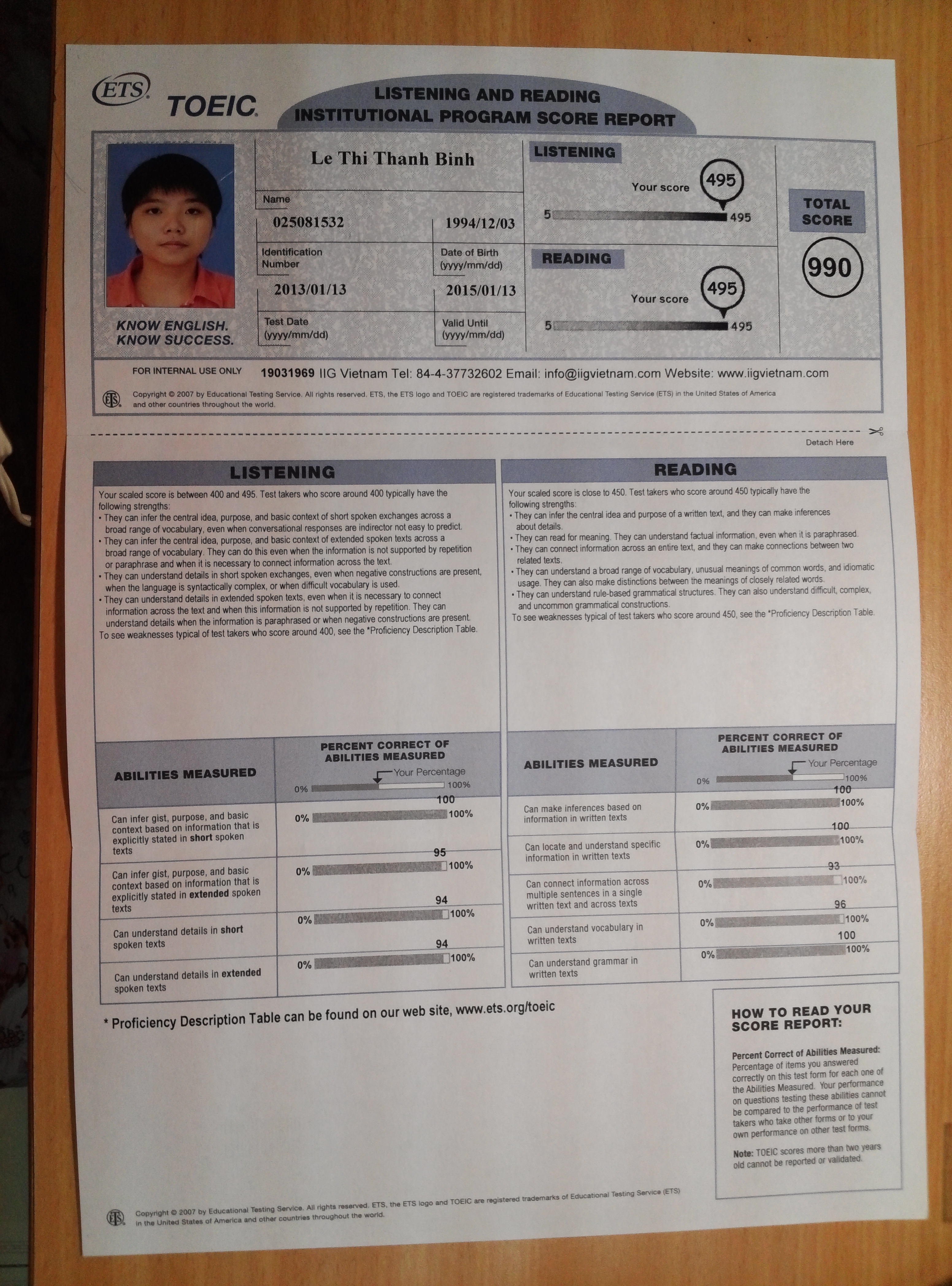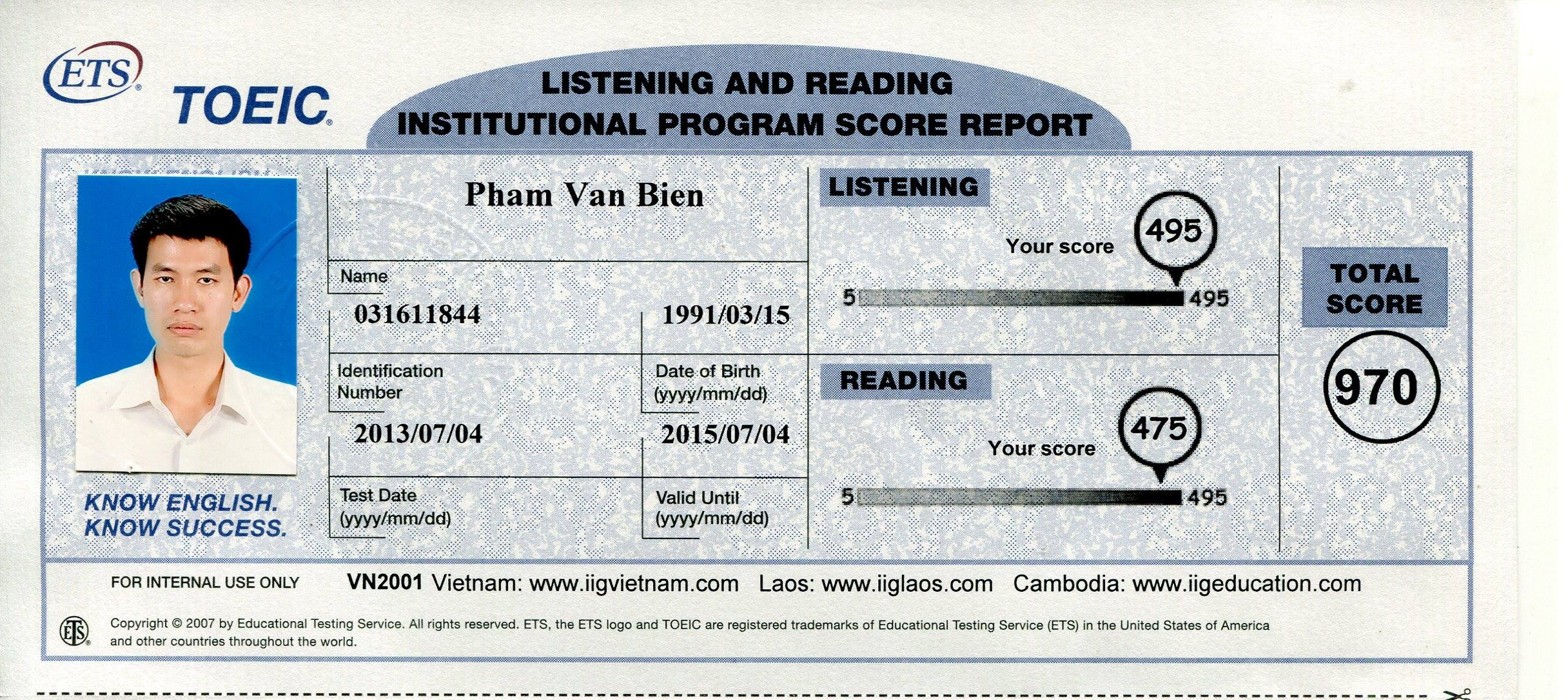 | Phạm Văn Biên | TOEIC 970 | Vào xem | ||